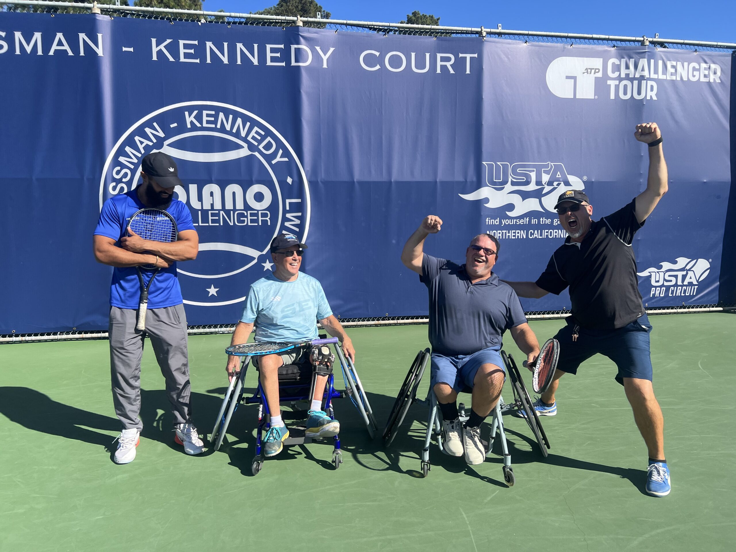The Adaptive Athletics Association (AAA) pulled off back-to-back wheelchair tennis exhibitions this October, and I couldn’t be prouder. On October 12, 2025, Michael and I represented AAA at the Solano Challenger, playing 10 games before the ATP Men’s Singles Final. We had a great day of tennis, with the crowd fully engaged—cheering, clapping, and wanting more!